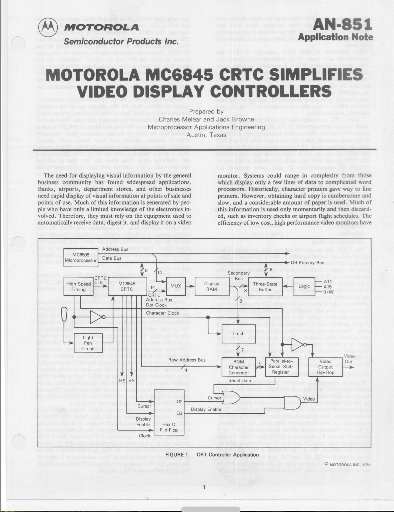 Motorola MC6845 CRTC Simplifies Video Display Control