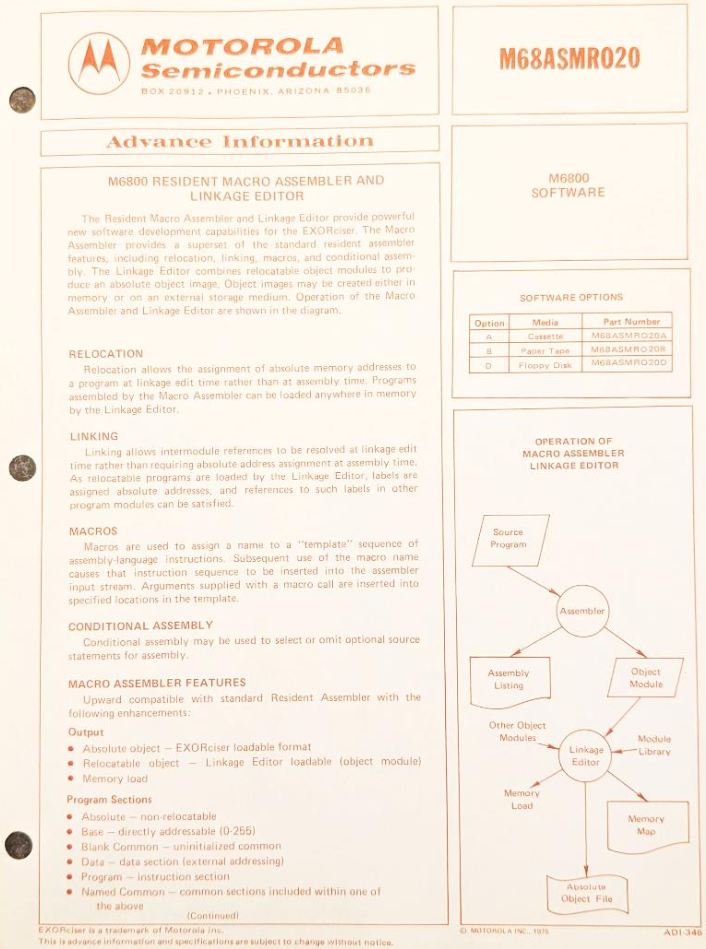 M6800 Resident Macro Asembler and Linkage Editor Datasheet