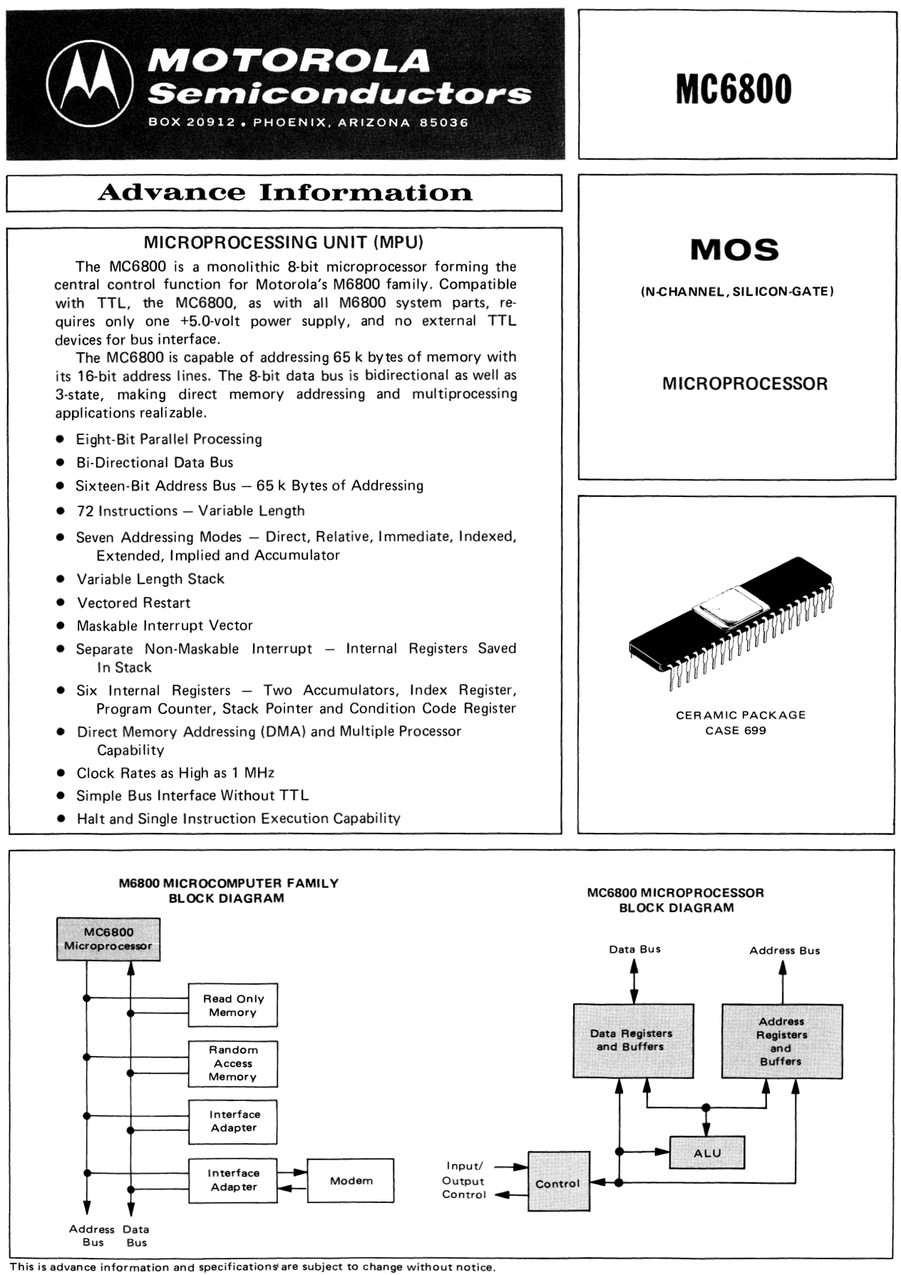 8-Bit Microprocessing Unit (Advance Information May 1975)ΒΆ
