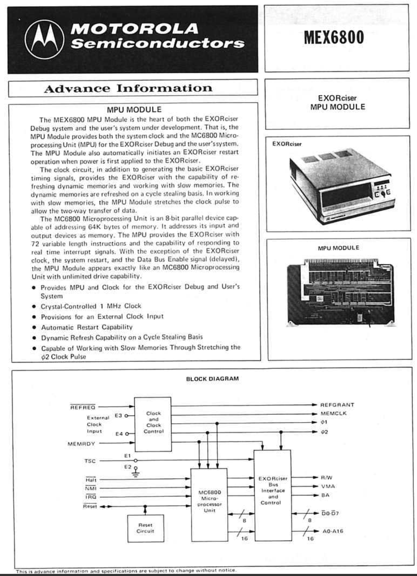EXORciser MPU Module Datasheet