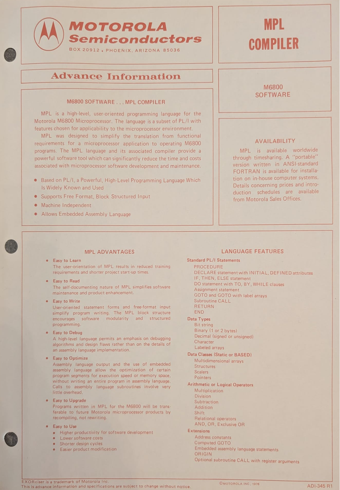 MPL Compiler Datasheet
