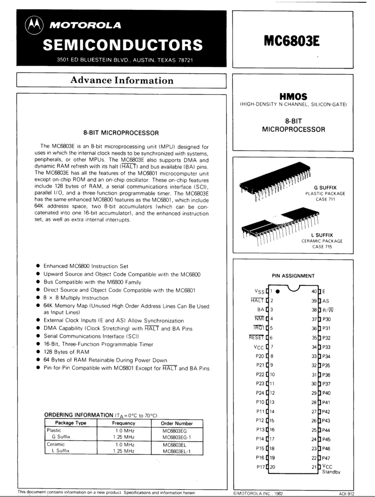 MC6803E 8-Bit Microprocessor