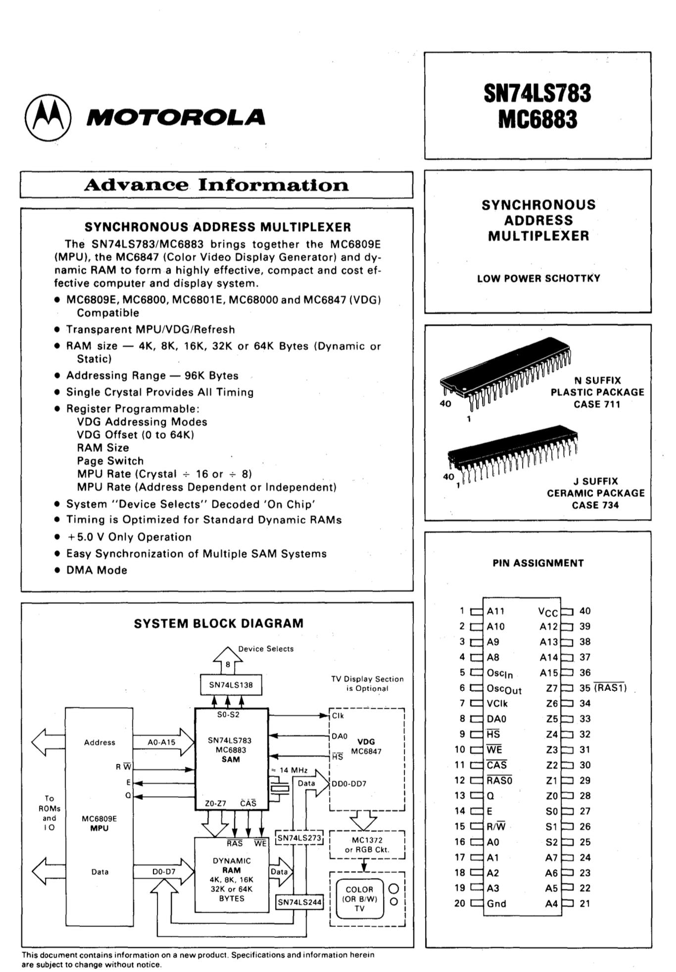 MC6883 Synchronous Address Multiplexer