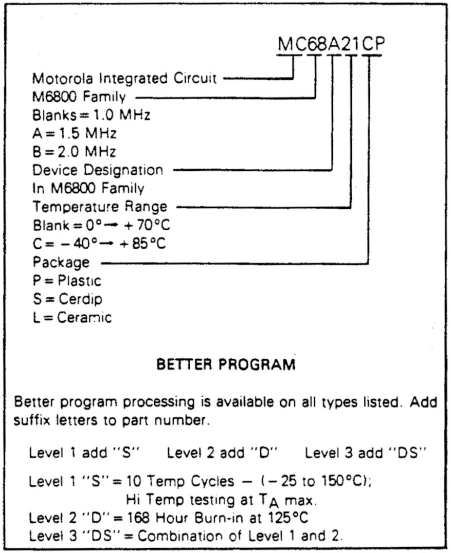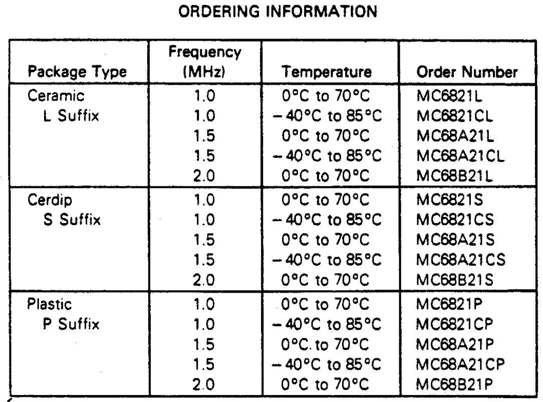 In addition to the usual part numbers (depicted below) for the MC6821, there are also an additional number of variants.