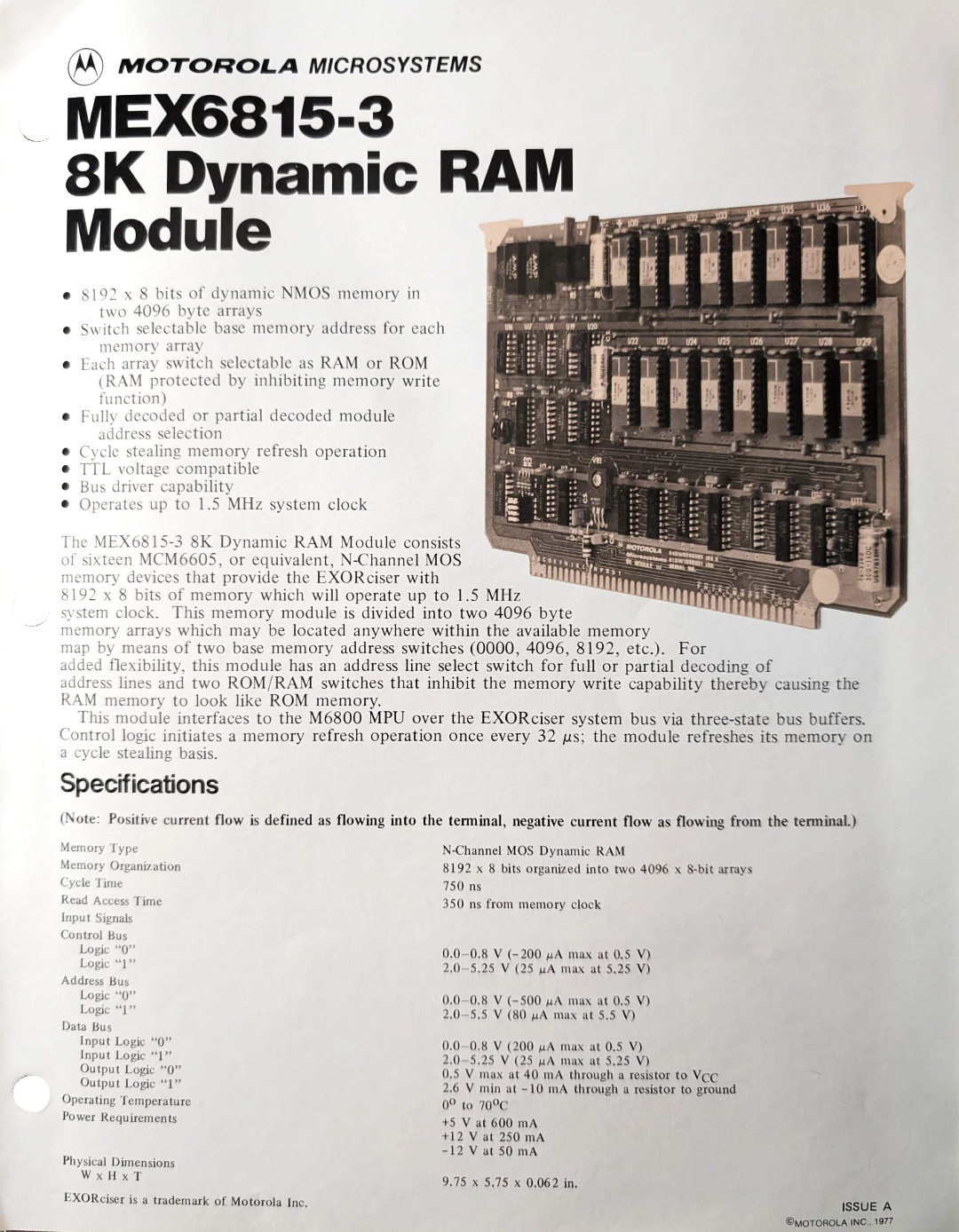 MEX6815-3 8K Dynamic RAM Module Brochure