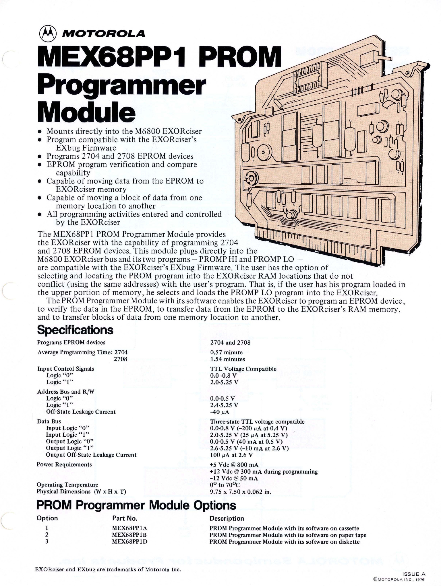 MEX68PP1 PROM Programmer Module Brochure
